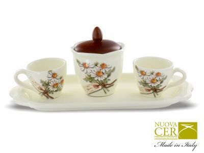 Urokliwa taca z filiżankami i cukiernicą wykonana z ceramiki o bardzo delikatnym. kremowym odcieniu. dekorowana motywami polnych kwiatów. Piękny. kwiatowy ornament przywodzi na myśl spacery po pachnących polach i łąkach z dzieciństwa. Możliwość zakuppojedynczych elementów...