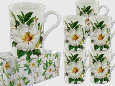 Zestaw sześciu wyjątkowych kubków. Każdy z nich ozdobiony został tym samym motywem ? piękną. białą magnolią. wyglądającą jak na obrazach najwspanialszych artystów. Zwłaszcza w zastosowanym wzorze widać ogromną dbałość o najdrobniejsze szczegóły. Kompzachwyca najwyższą...