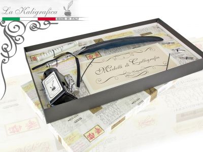 Zestaw piśmienniczy - gęsie pióro + kałamarz + stalówki